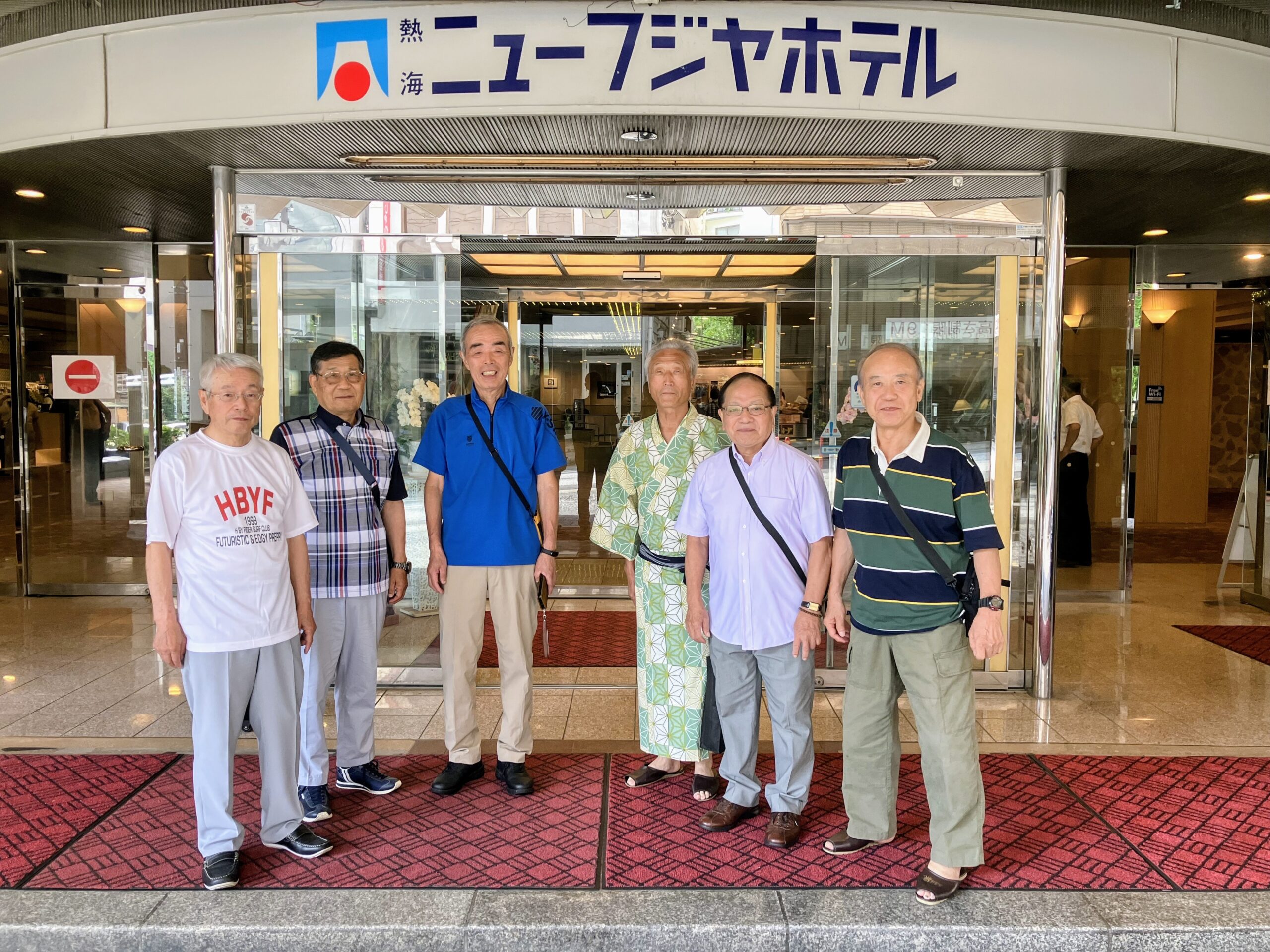 翌朝は自由解散と決めていましたが、名残惜しいのか結局全員がロビーに顔を揃えました。折角なので集合写真を撮り、その後はホテル名物の家康風呂へ行く人、初島観光へ行く人、熱海駅へ、と思い思いの方向へ。